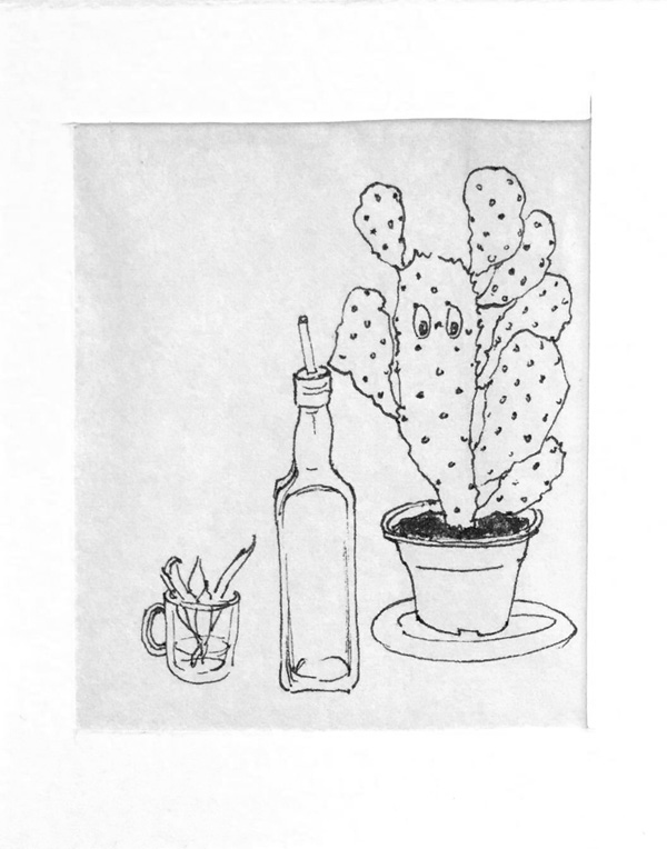 We have to talk about Lucie’s ‘forest’ another time. This cactus is one of the plants Lucie’s boyfriend brought along; it makes a sweet companion standing on Clementine’s desk beside a green bottle and a lemon (the lemon has probably disappeared by now).