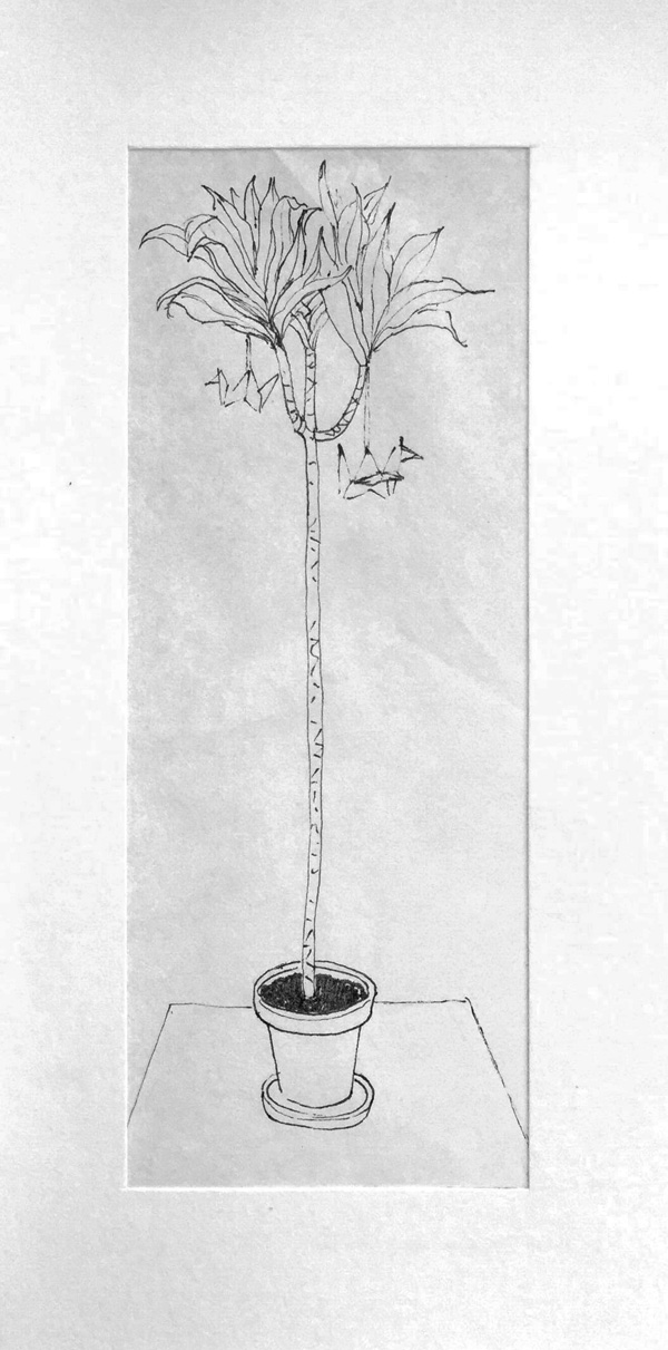 Niki brought in this tall beauty, which has now been adorned with a pair of sunglasses and two paper cranes.
